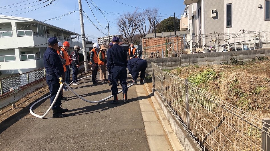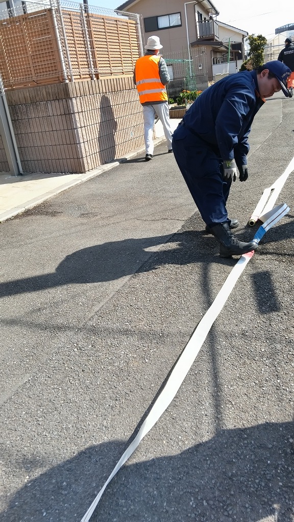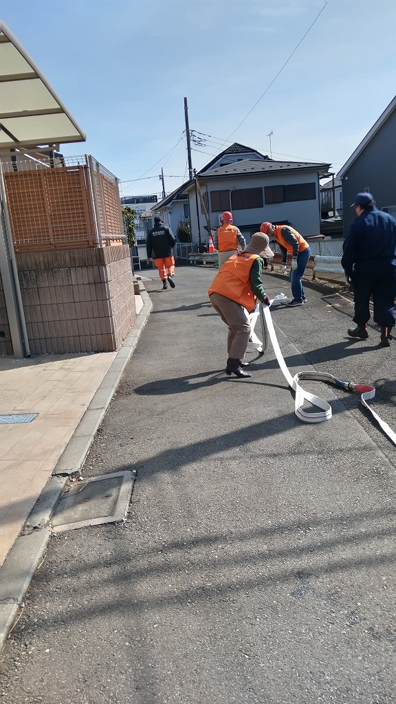 令和7年2月16日(日)午前11時から南エリア道路でスタンドパイプ初期消火訓練を実施、令和6年度の最後の訓練であったが幸いにも風もなくよい天気で予定通り無事実施できた。今回特記すべきは指導の主体を当地域を守る府中市第4消防分団に依頼したことでした。分団から鈴木団長ら5名、府中消防署朝日出張所からはサポートとして2名来ていただきました。我々自主防災隊参加者は8名と比較的多く参加でき良かったです。他住民の方も数名総勢十数名と賑やかな訓練となりました。昨年10月20日の「まちかど訓練」から三か月経過しているため、良い復習の機会となりました。鈴木分団長の挨拶から分団員の模範行動の後、4人単位のA,Bグループに分けて順次スタンドパイプ消火訓練を行った。参加の皆さんお疲れさまでした。第4分団との交流関係が大変良かったと思います。