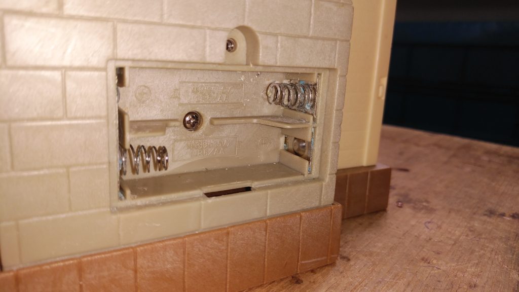 2024-02-16 / 最終更新日時 : 2024-02-24 matsubarahi 治療事例 シルバニアファミリー(部屋の照明が点かない「照明の写真撮り忘れ」) 電池ボックス電極の腐食、腐食による断線、スイッチの接触不良がありました。電極を磨き、電線を入れ替え、スイッチの接点に接点復活材を入れて点灯するようになりました。 電極の腐食 線を入れ替えた状態 接点不良が発せしていたスイッチ