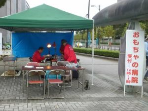 平成30年10月13日(土)すずかけ公園にて開催されたリサイクルフェスタでおもちゃの病院も参加しました。当日はリサちゃんショップでの通常開院と重なり、ドクターの手配には苦労しましたがたいへん良い経験となり今後の参考となりました。