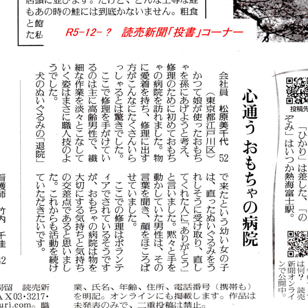 いつも良いスナップを撮ろうとしてますが、ついつい余裕がなくなってしまいます。読売新聞に載ってました投書記事も掲載しました。